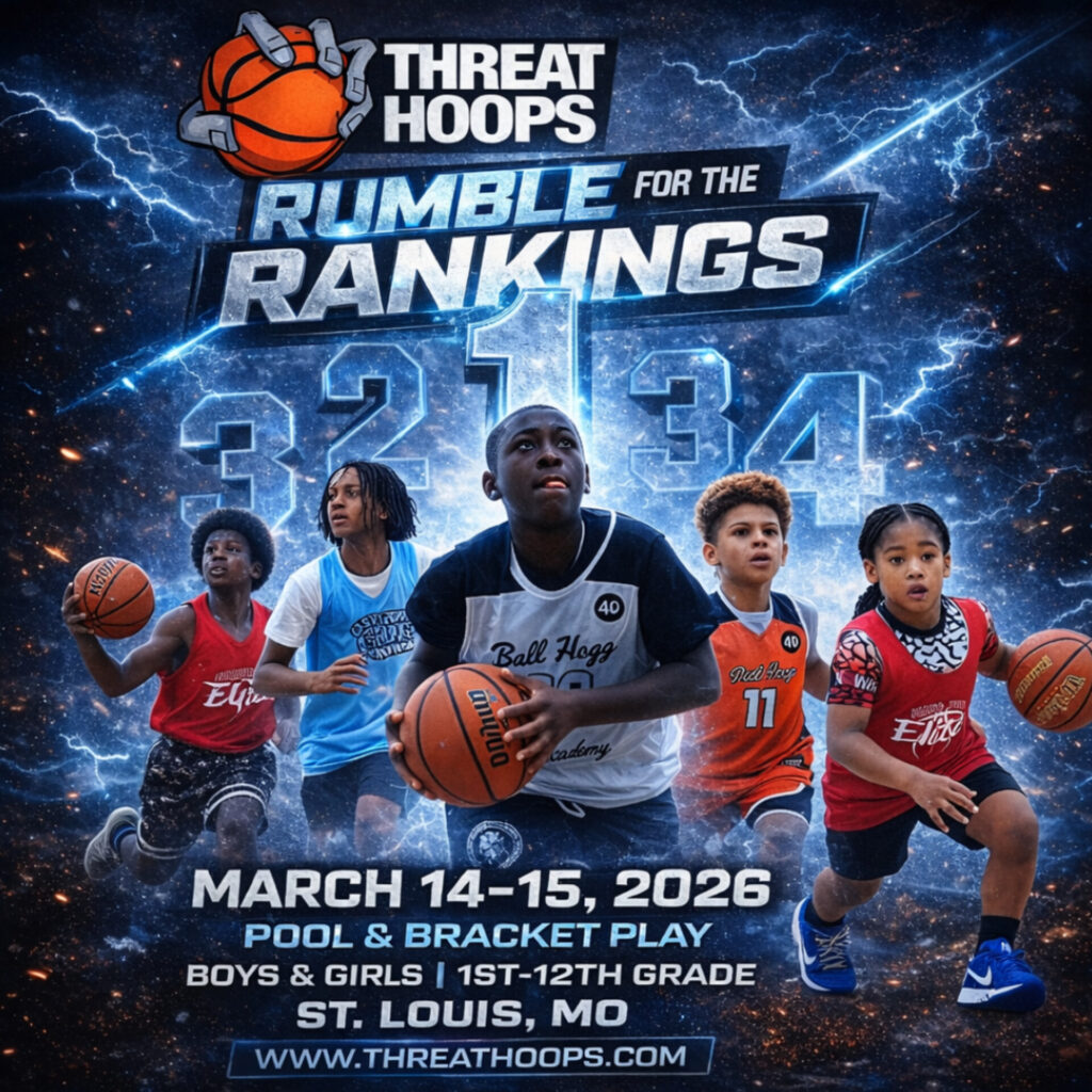 The Tournament Schedule will be posted here after 10pm Wednesday on the week of the event. If you see an error please send text or email (NO CALLS) to 314-566-8159 or email coachthreat@threathoops.com